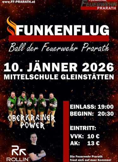Am 10. Jänner 2026 ist es wieder so weit – ich darf erneut als DJ in der Disco beim Feuerwehrball der Freiwilligen Feuerwehr Prarath in Gleinstätten auflegen! Nach dem grandiosen Erfolg im letzten Jahr geht der Funkenflug in die zweite Runde. Ich freue mich riesig darauf, gemeinsam mit allen Gästen sowie den Kameradinnen und Kameraden wieder eine unvergessliche Partynacht zu erleben.